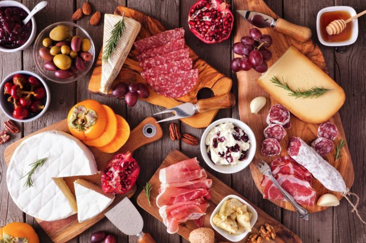 Our antipasto grazing boards include (but not limited to) prosciutto, salami, dips, olives, cherry tomatoes, baby cucumber, baby carrots, radish and ciabatta.